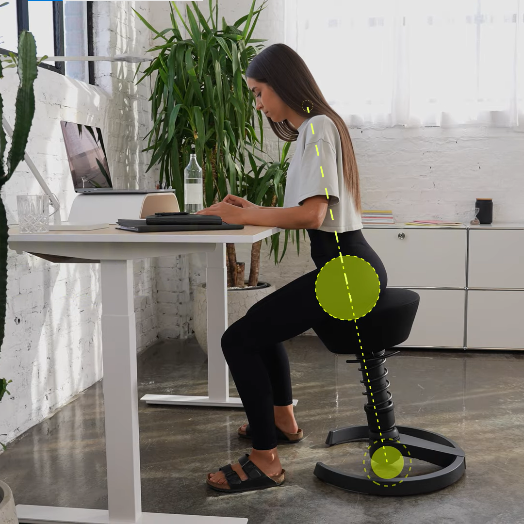 Balansestolens konvekse sete forhindrer vaskulær påvirkning. Å sitte i bevegelse stimulerer aktiv blodsirkulasjon helt tilbake til hjertet og motvirker eventuelle venøse forstyrrelser.