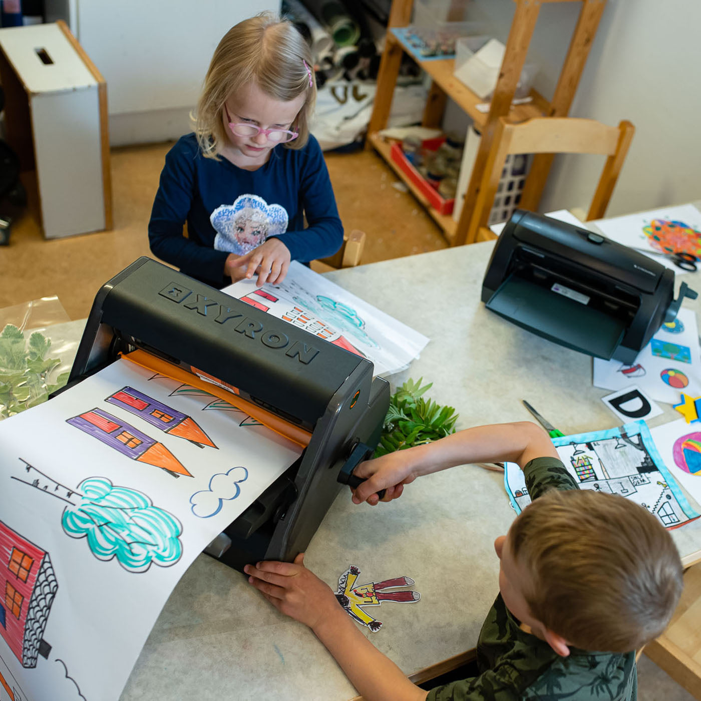 Vær kreativ med Xyrons ulike applikasjoner, laminat, lim og designmaterialer helt etter barnas og dine behov.