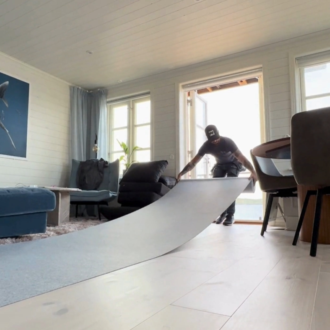 Vår selvklebende gulvbeskyttelse er enkel å påføre direkte på gulvet. Det krever ikke noe ekstra utstyr, noe som sparer både tid og krefter.