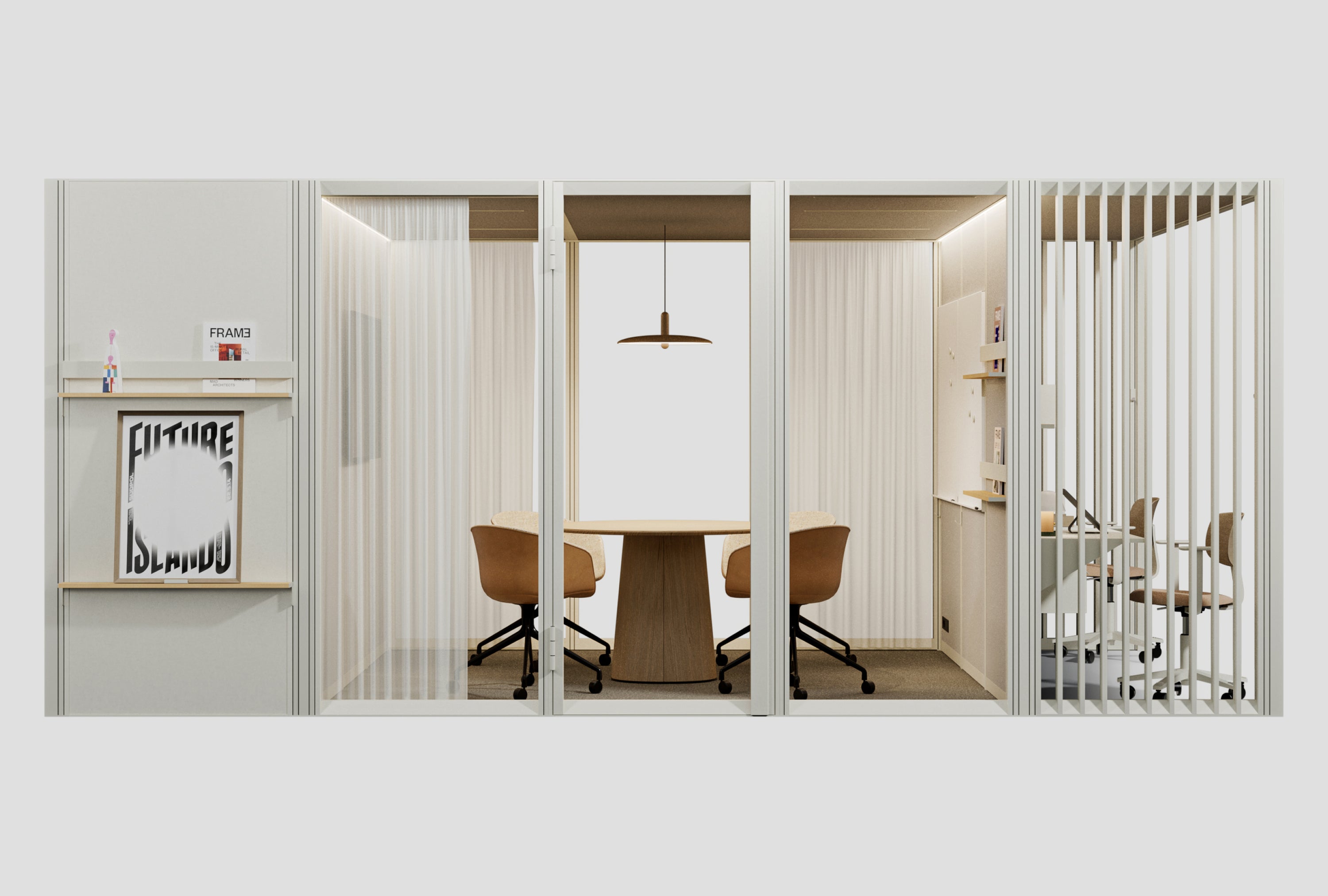 OmniRoom er et innovativt rom-i-rom-system som muliggjør revolusjonerende fleksibilitet og tilpassbar kontordesign.