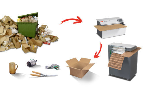 Fra avfall til emballasjemateriale. Gammel eller brukt pappemballasje kan enkelt gjøres om til fyllmaterialer som pakkematter og pakkefyll som er så godt som nytt!