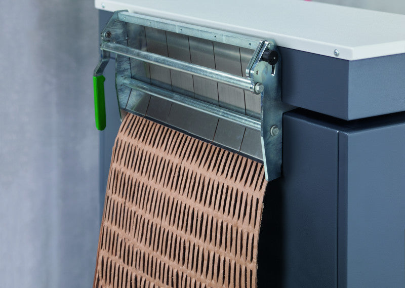 Gammel eller brukt pappemballasje kan enkelt bearbeides til ønsket materialbredde for polstringsmatter eller komprimert emballasjemateriale.