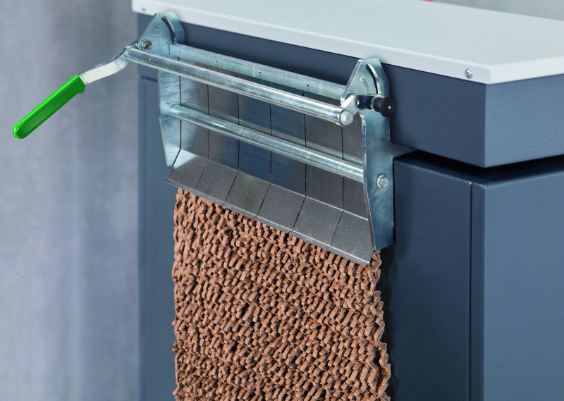 Allroundmaskinen for universell hverdagsemballasje! Denne høyytelses HSM ProfiPack P425-korrugeringsmaskinen behandler en rekke lag med brukt pappemballasje og konverterer dem til polstringsmatter eller polstret fyllmateriale i ett enkelt trinn.