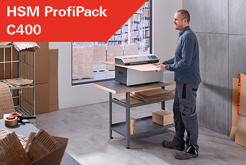 Som en kompakt bordmaskin er HSM ProfiPack C400 mobil og fleksibel.