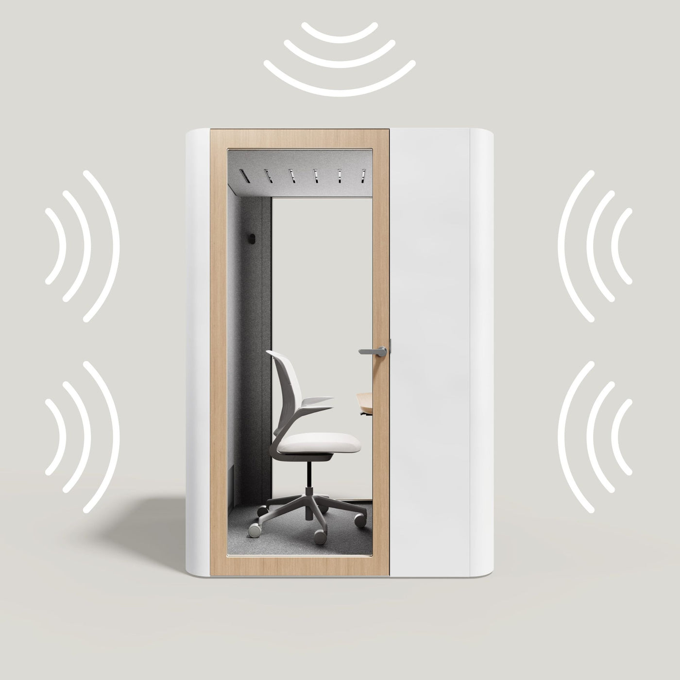 Den bransjeledende lydisolerte konstruksjonen lar deg jobbe så høyt du vil. Bli sett, ikke hørt.