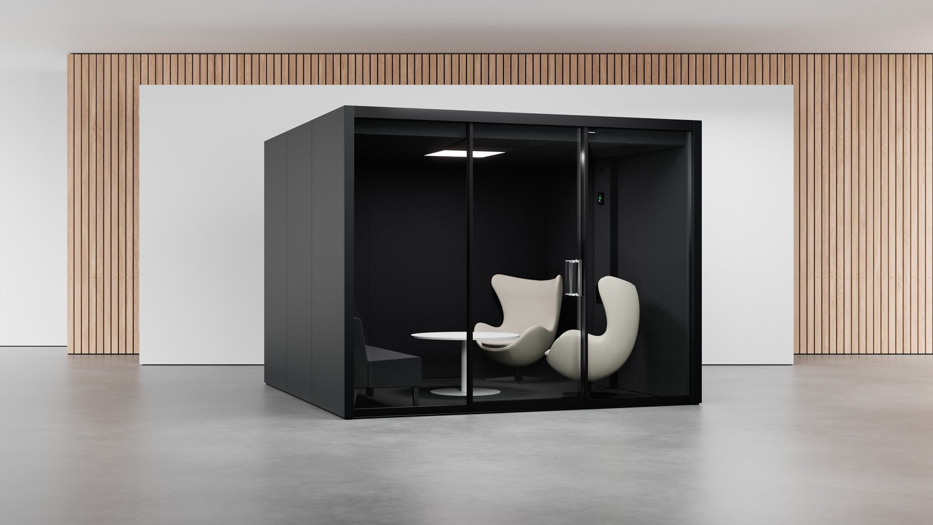 Arbeid i fred og ro i dette store stillerom fra Vetrospace. Ved å senke lydnivået til en viss grad, skaper du et bedre arbeidsmiljø å være i.